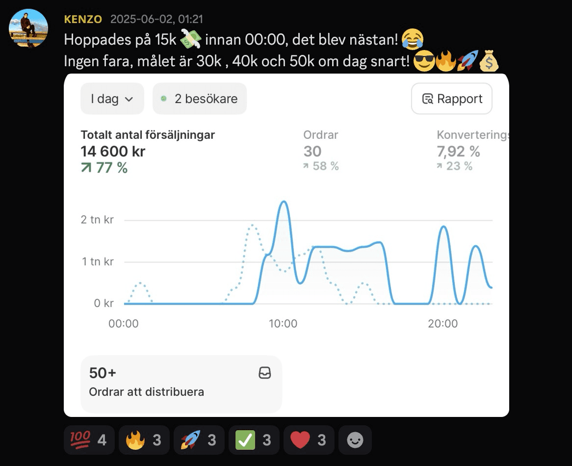 “Kenzo här har gjort 400 000 kr under sina första månader – det är bara att köra på. Man ska börja redan idag och testa sig fram, inte ge upp. Det är inte lätt, men absolut inte omöjligt. Jag är ett levande bevis.”
